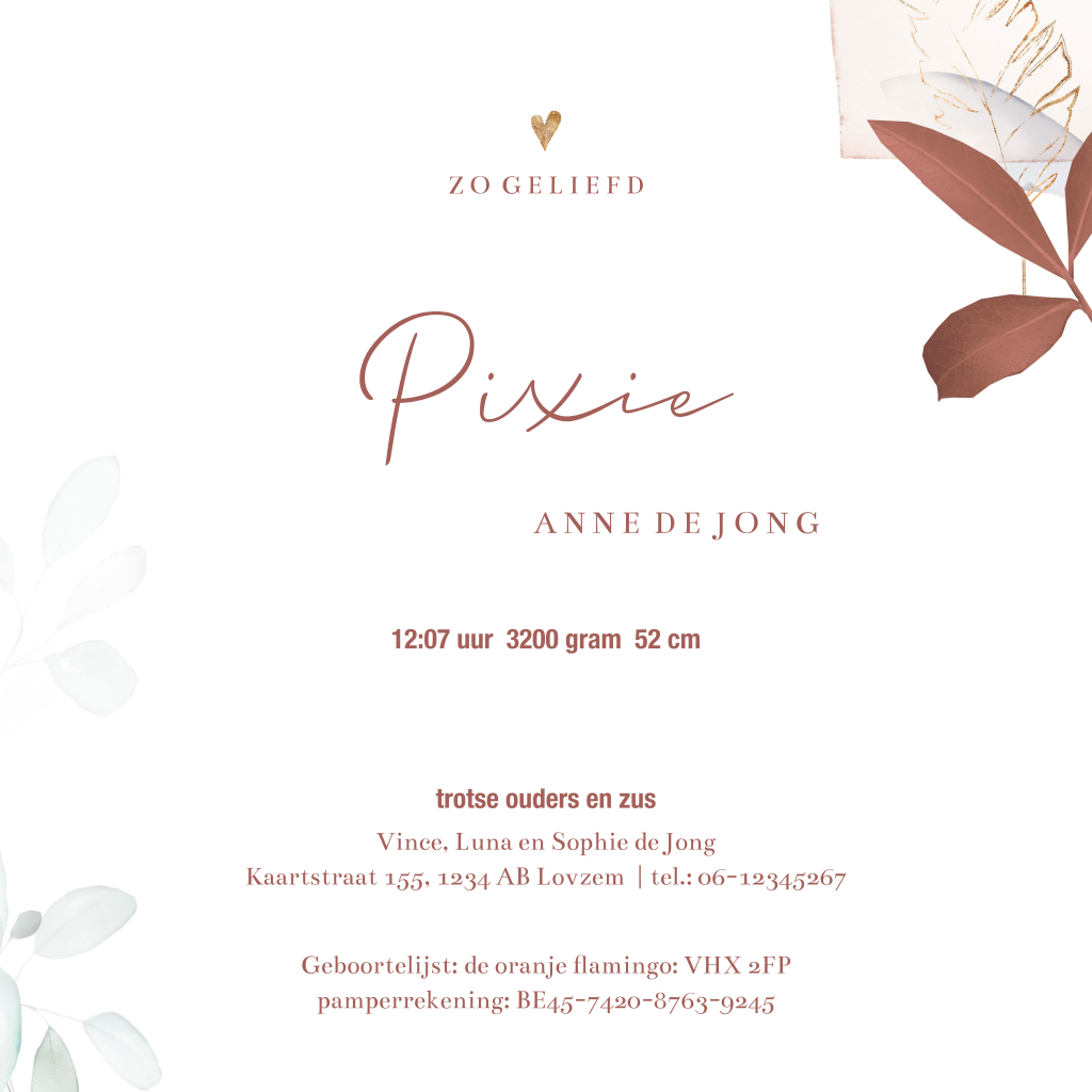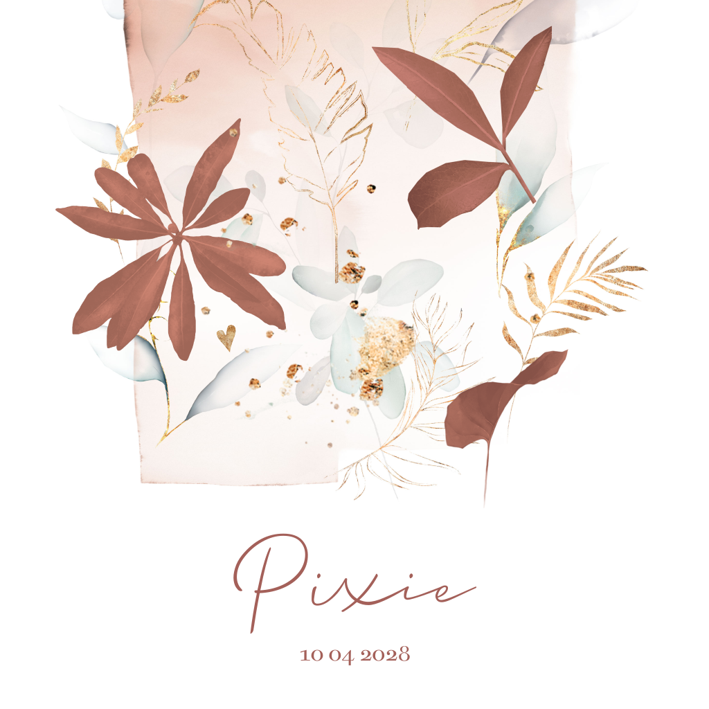 Geboortekaartje voor een meisje met warme aardetinten en bloemen. (4754)