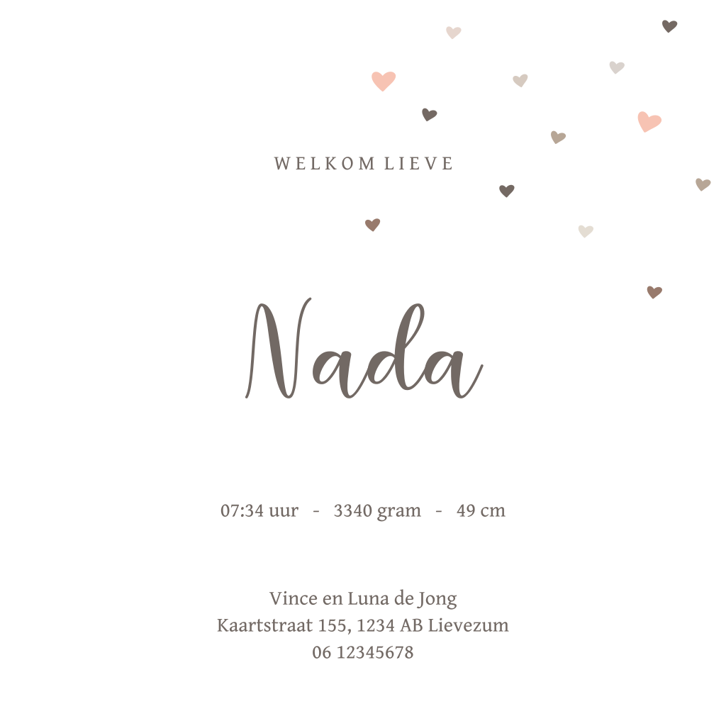Geboortekaartje duif meisje roze nude hartjes. (4426)