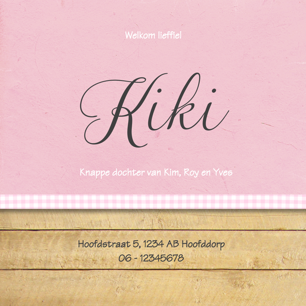 Origineel geboortekaartje voor een lief meisje met hout, lintje, een stoere label en een écht houten hartje. Zet op de voorkant een mooie foto van de kleine meid zodat iedereen haar alvast kan bewonderen.