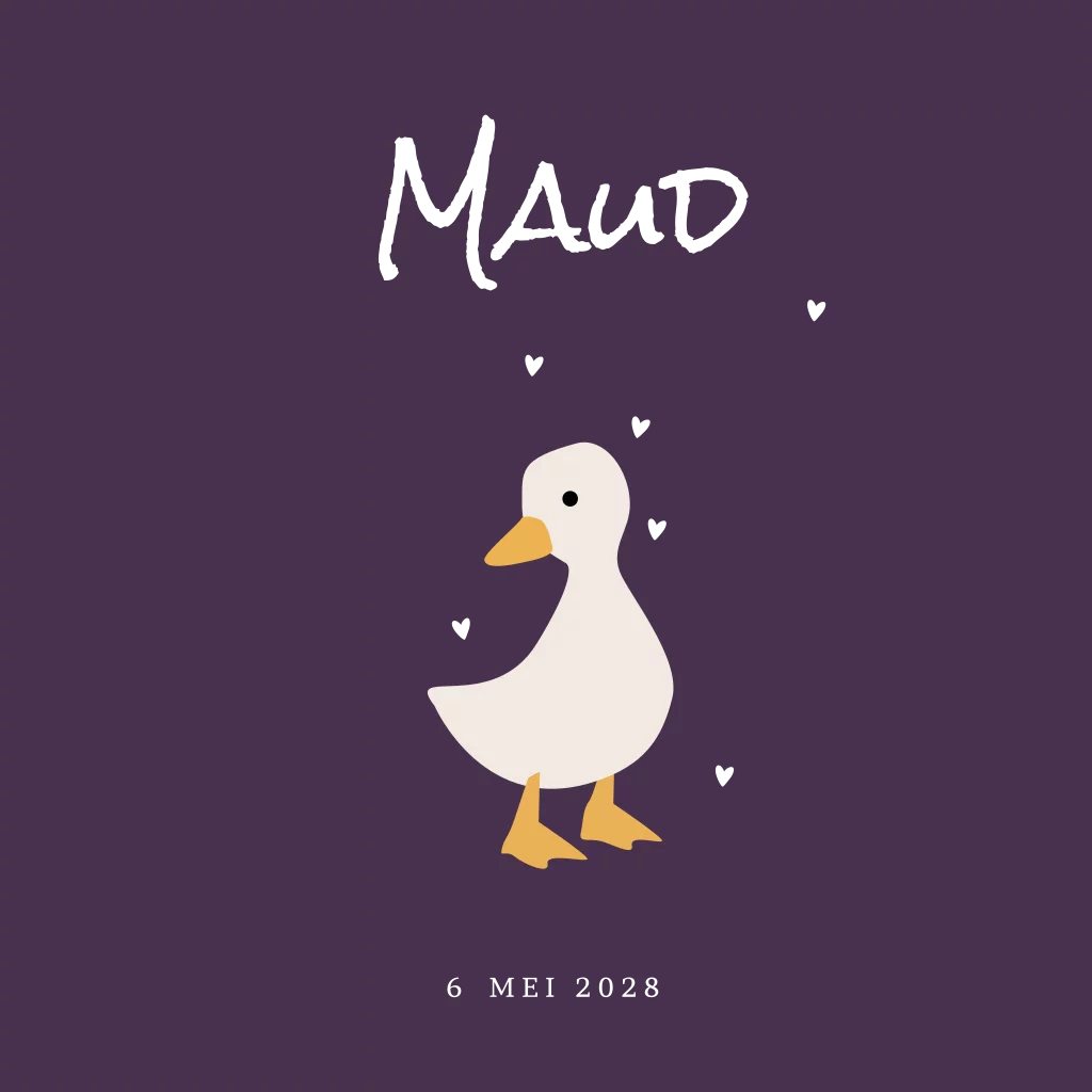 Geboortekaartje meisje gans baby folie