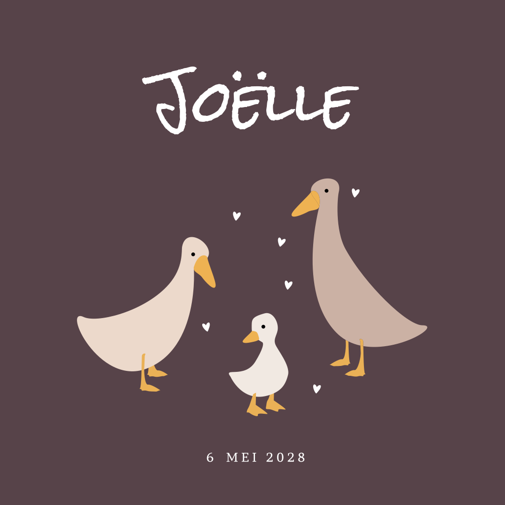 Geboortekaartje met gansje op terra kleurige achtergrond en foliedruk. (4225)