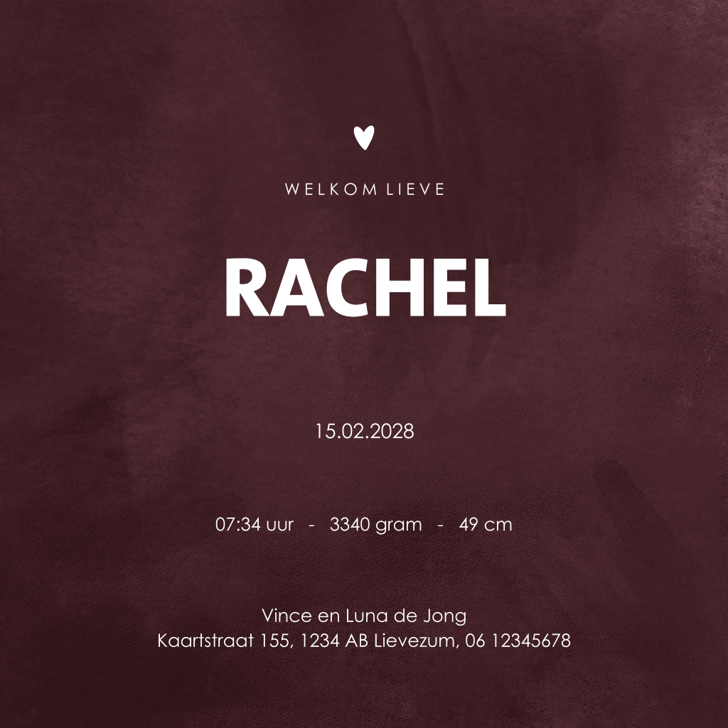 Minimalistisch geboortekaartje meisje met terra achtergrond