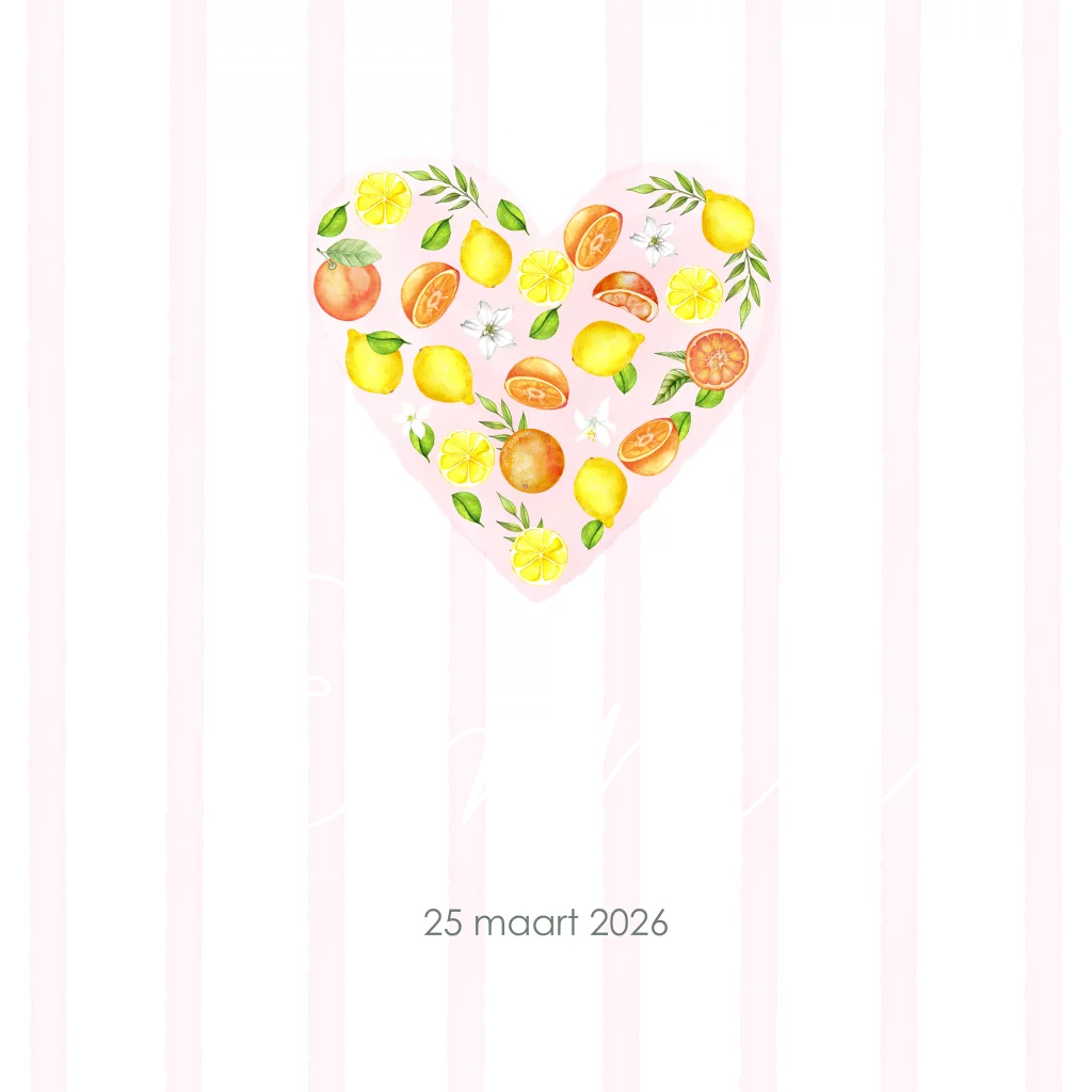 Geboortekaartje meisje hartje citroen en sinaasappels