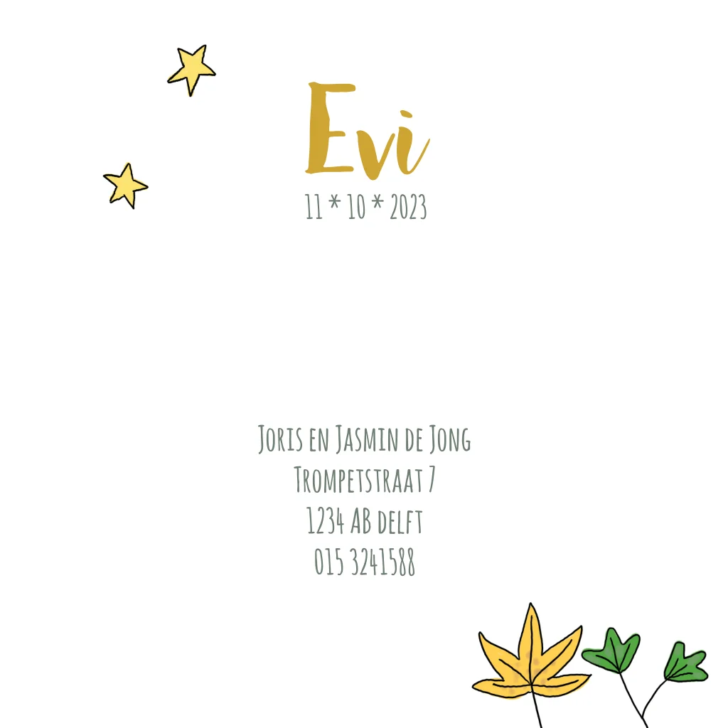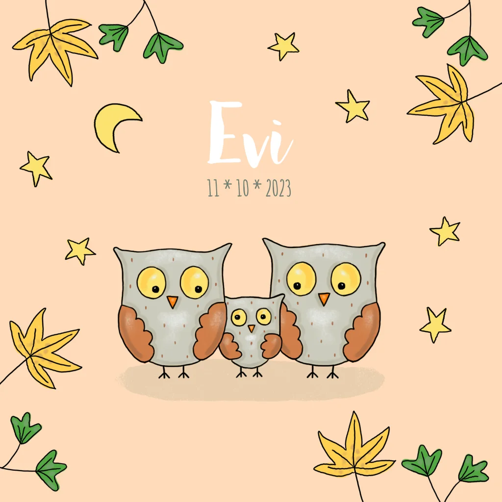 Geboortekaartje meisje herfst 3 uilen sterren en bladeren