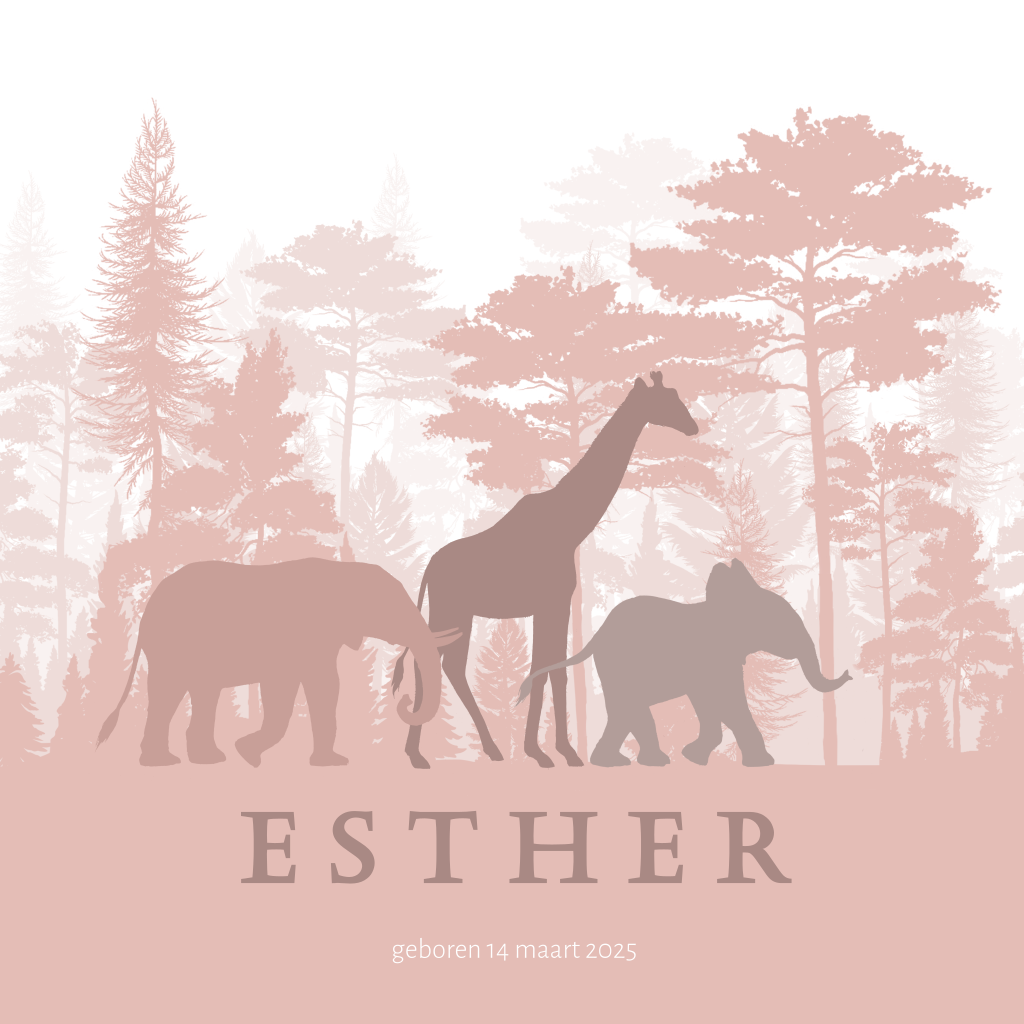 Geboortekaartje jungle roze met prachtige achtergrond. (4364)