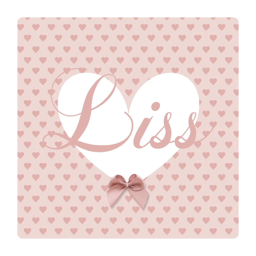 Klassiek en lief geboortekaartje met op de achtergrond een roze hartjes patroon met daarop een groot wit hart en sierlijke typografie voor een meisje. Het echte strikje past goed bij het ontwerp en maakt dit kaartje echt uniek. Aan de binnenkant kun je een mooie foto van de kleine meid plaatsen.