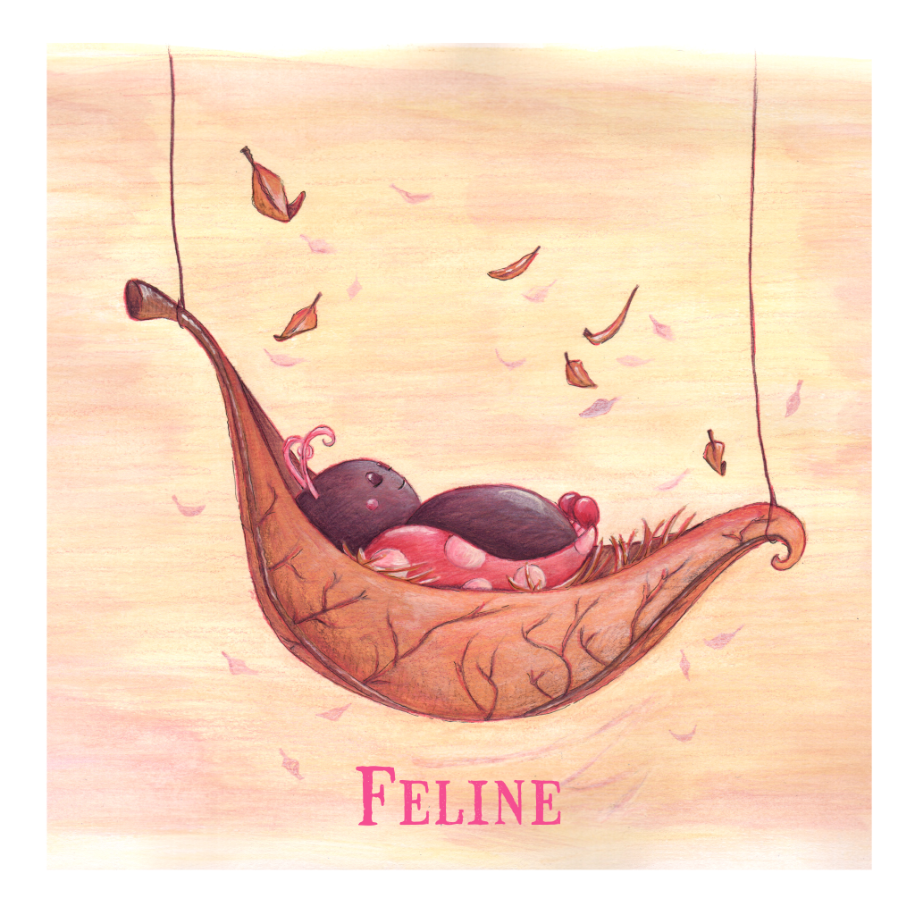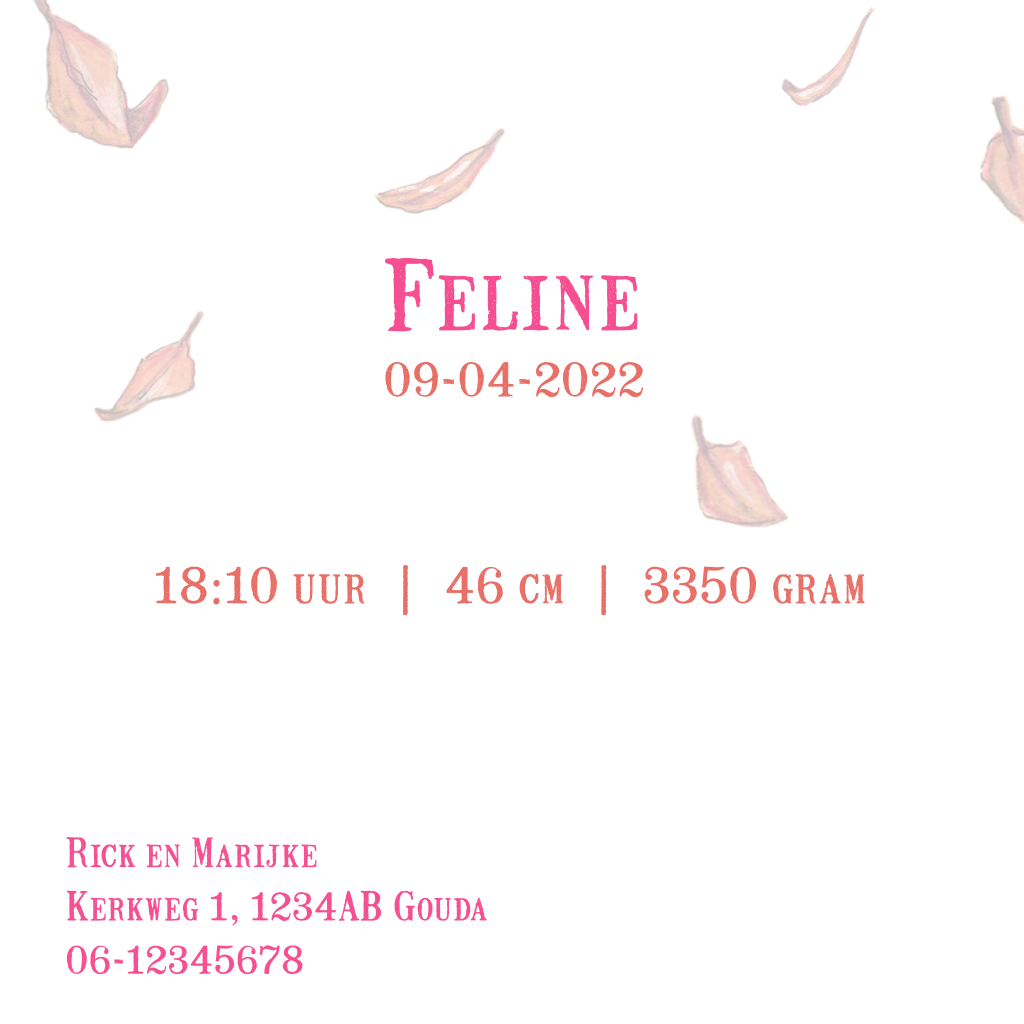 Geboortekaartje voor een meisje. Met een illustratie van een lieveheersbeestje slapend in een herfst blad in roze en oranje tinten. (3891)