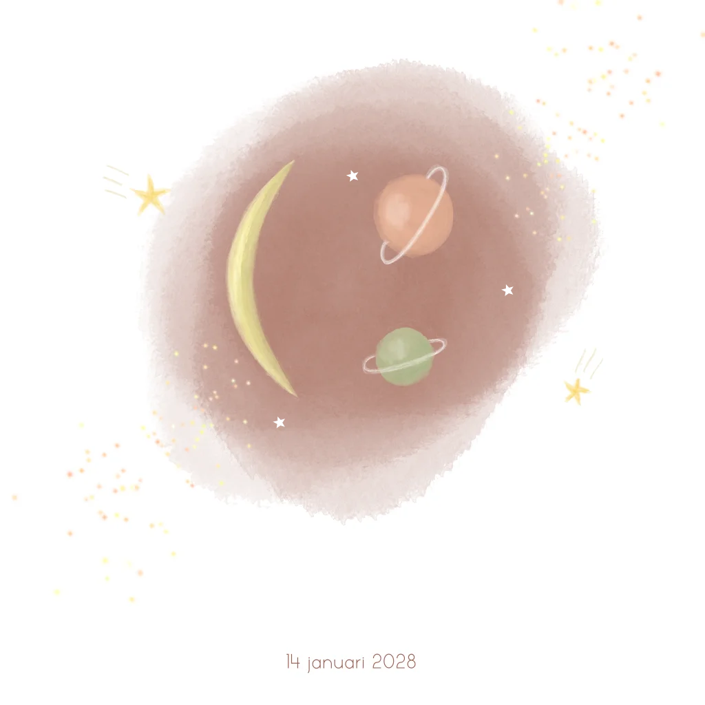 Geboortekaartje meisje maan sterren planeten