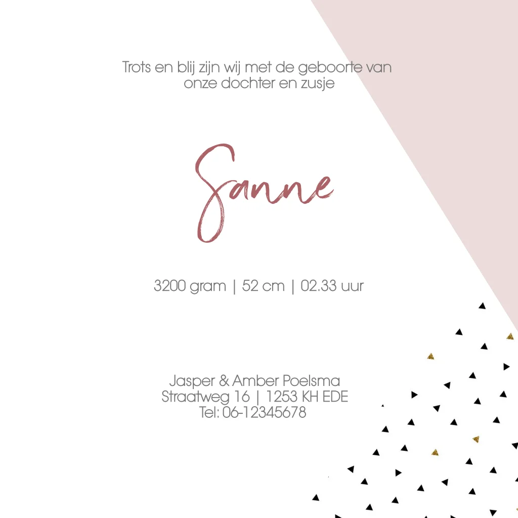 Geboortekaartje meisje met driehoekjes en strakke vlakken