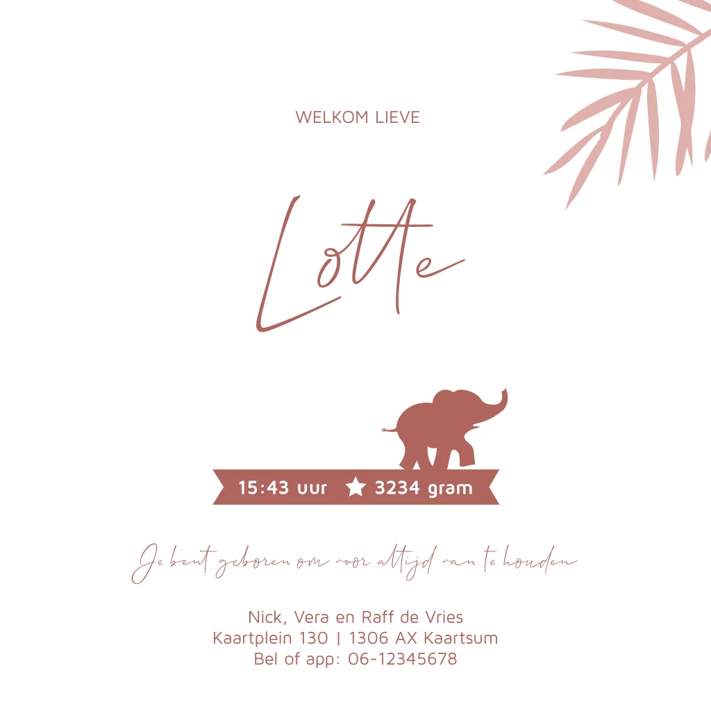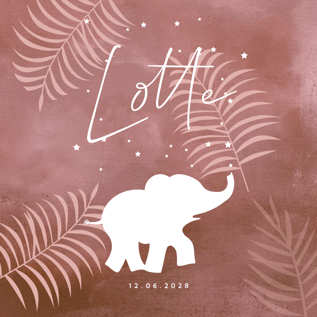 Lief kaartje voor een meisje met olifant in foliedruk met velvet look achtergrond.