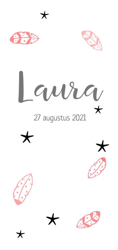 Geboortekaartje meisje met veertjes en sterretjes. (135)