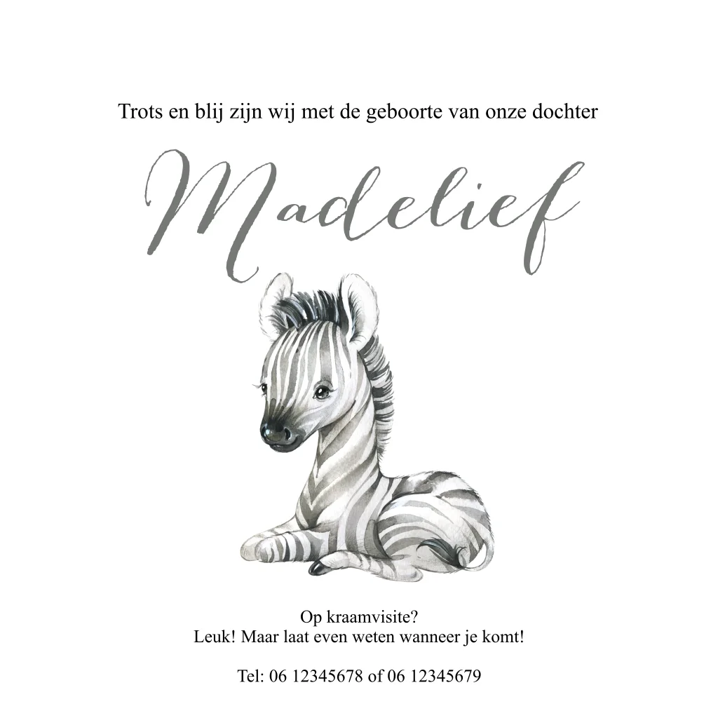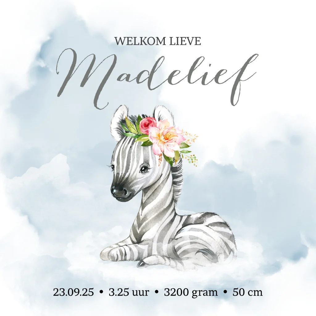 Geboortekaartje meisje met zebra en bloemen. (3737)