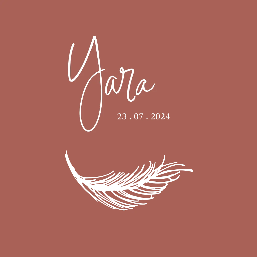 Een minimalistisch geboortekaartje voor een meisje met een veer in foliedruk. (4599)