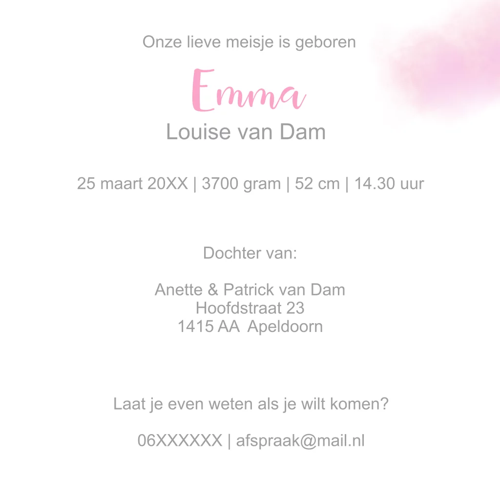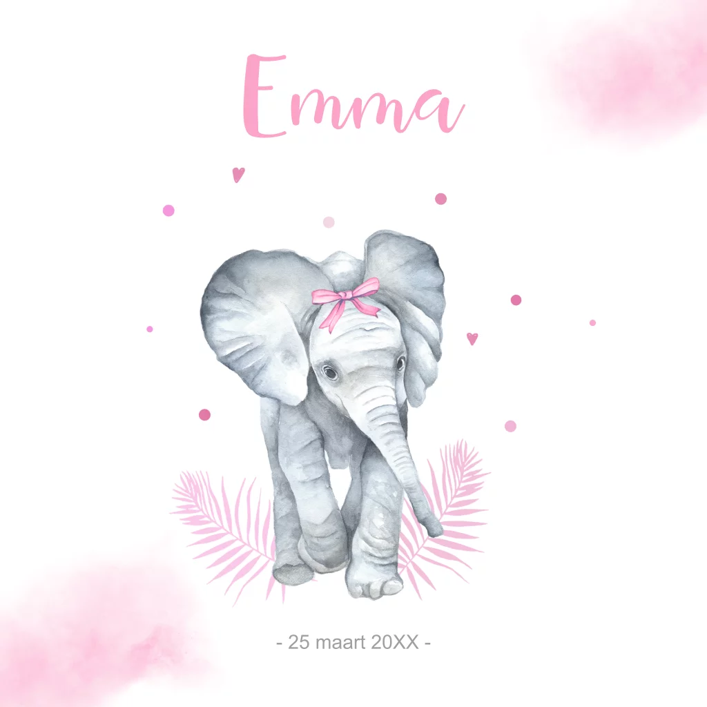 Geboortekaartje olifant voor een meisje met lief klein olifantje. (3570)
