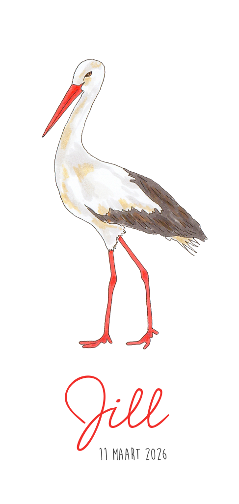 Een mooi getekend klassiek geboortekaartje voor een meisje met een ooievaar. De ooievaar staat symbool voor een nieuw begin en betekent geluksdrager. (3557)