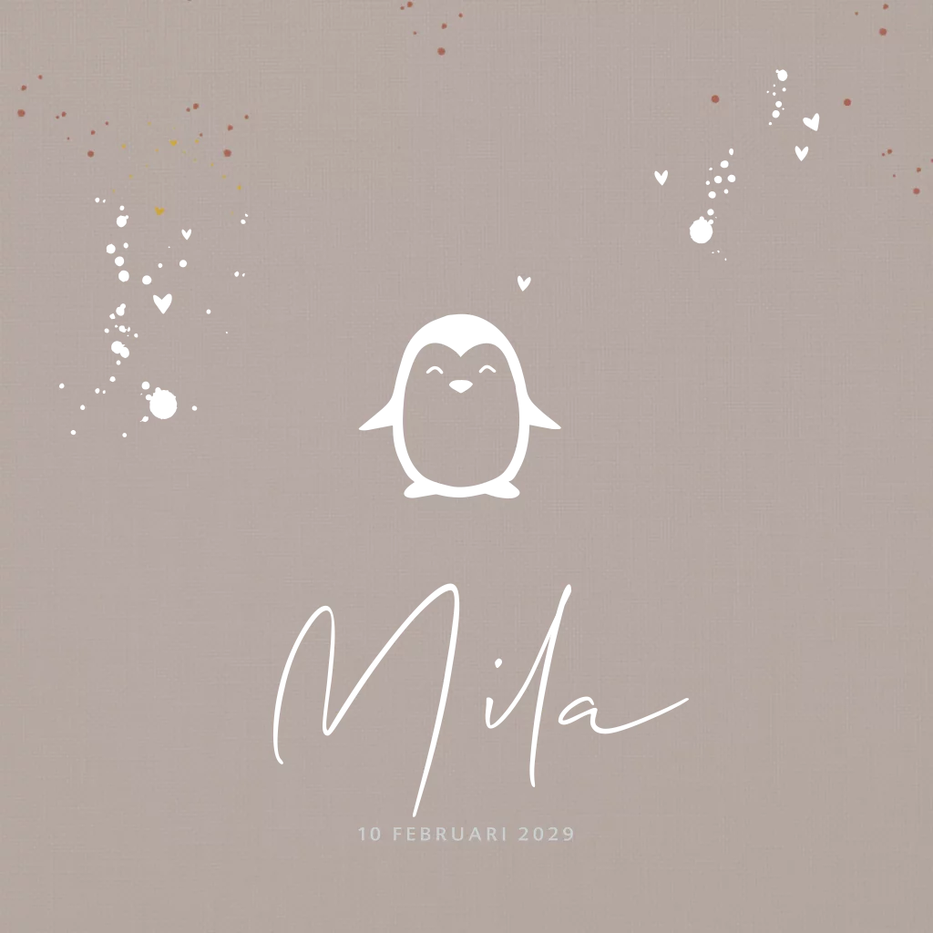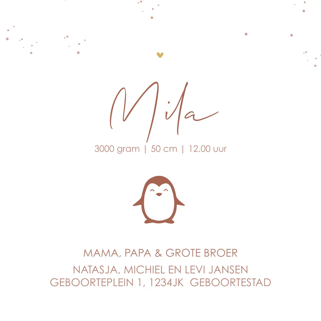 Geboortekaartje meisje pinguïn foliedruk. (4135)