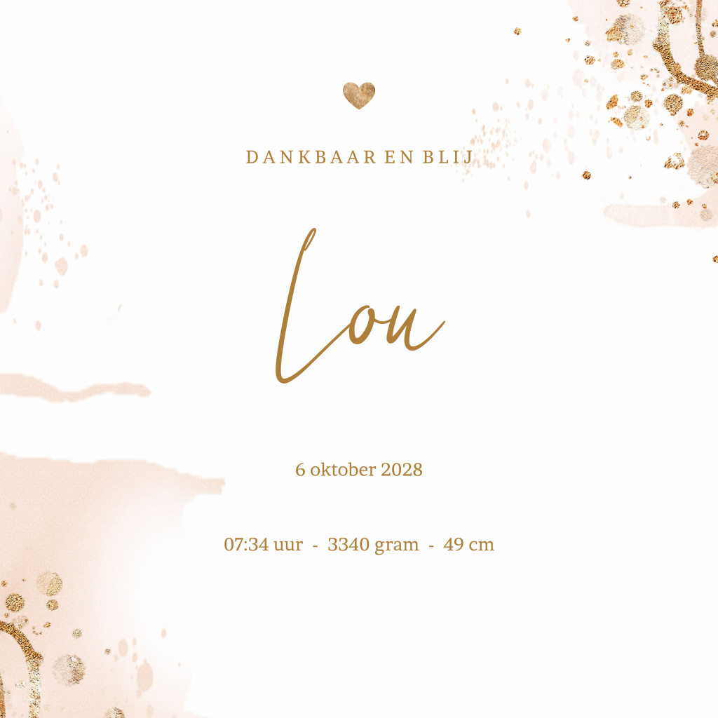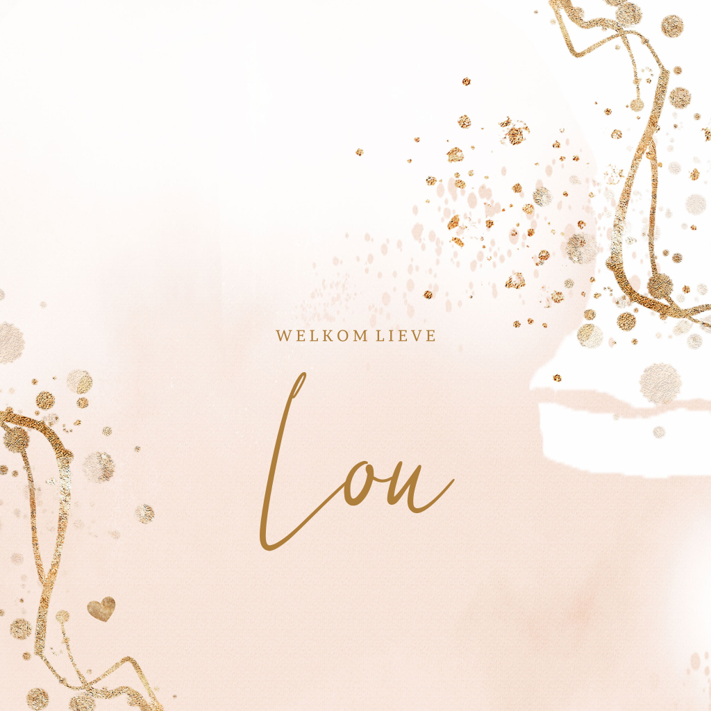 Modern geboortekaartje voor een meisje met roze watercolor en goudkleurige details. (4420)