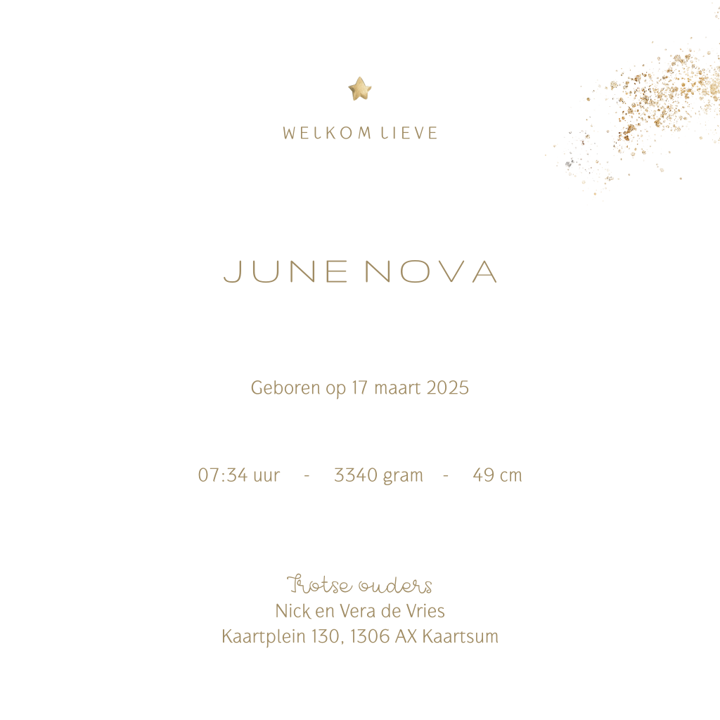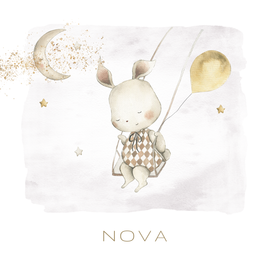 Lief geboortekaartje Nova meisje met konijn op schommel