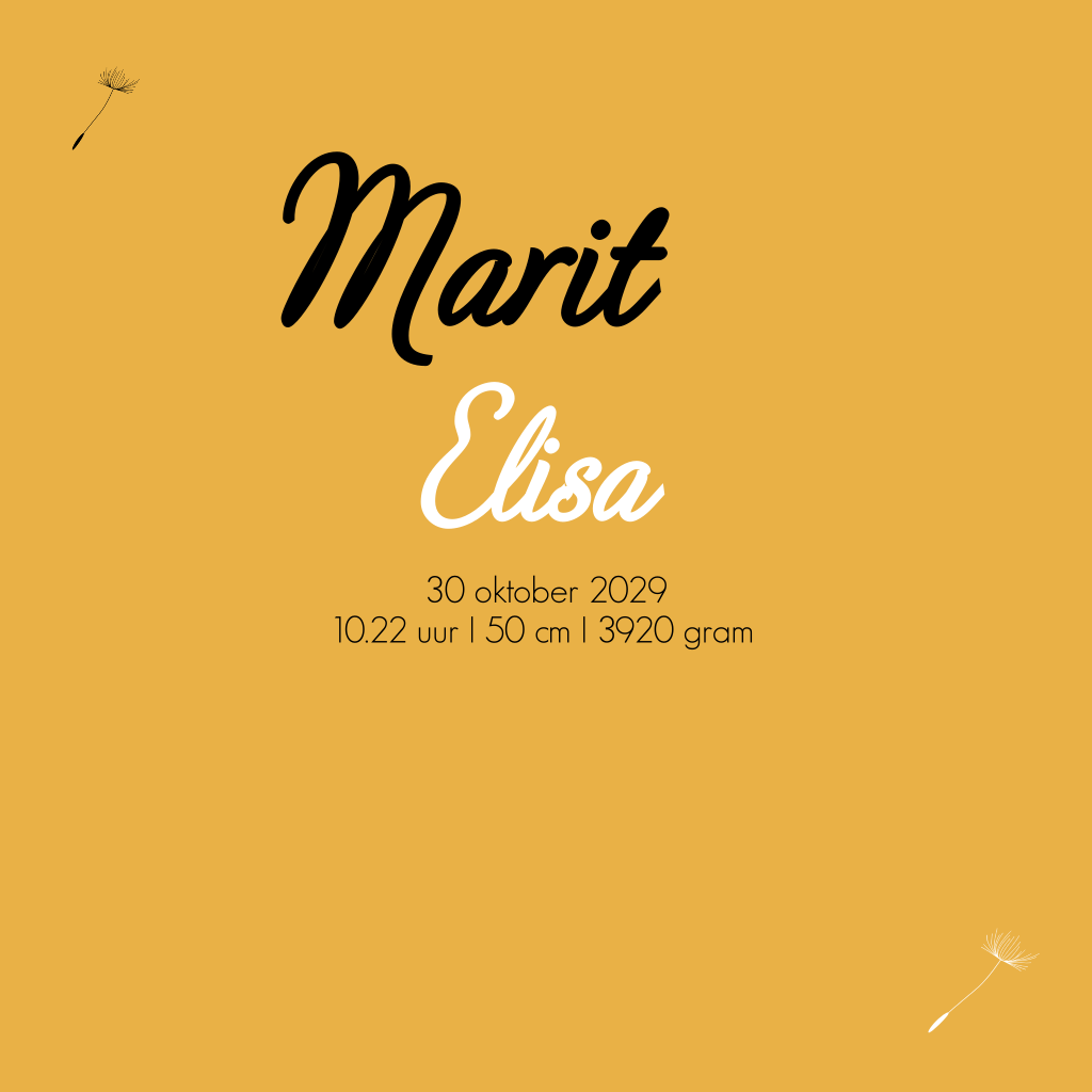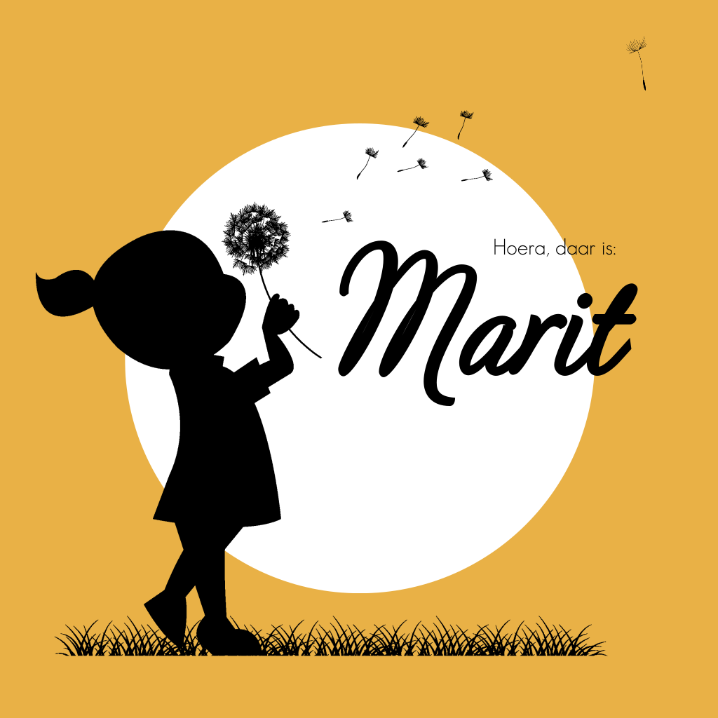 Lief eenvoudig geboortekaartje met een silhouet van een meisje dat een paardebloem uitblaast. (3331)