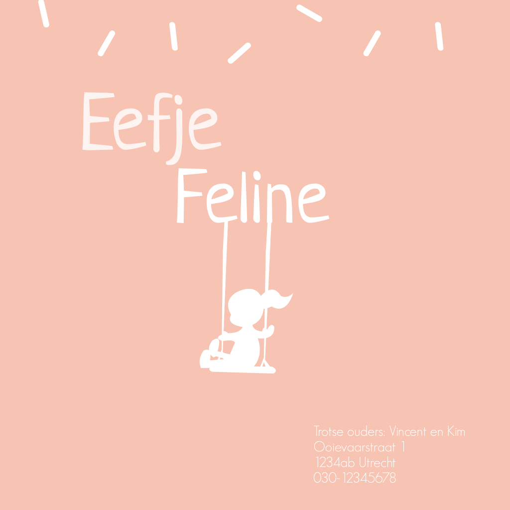 Lief eenvoudig geboortekaartje met een meisje dat op een schommel zit. (3239)