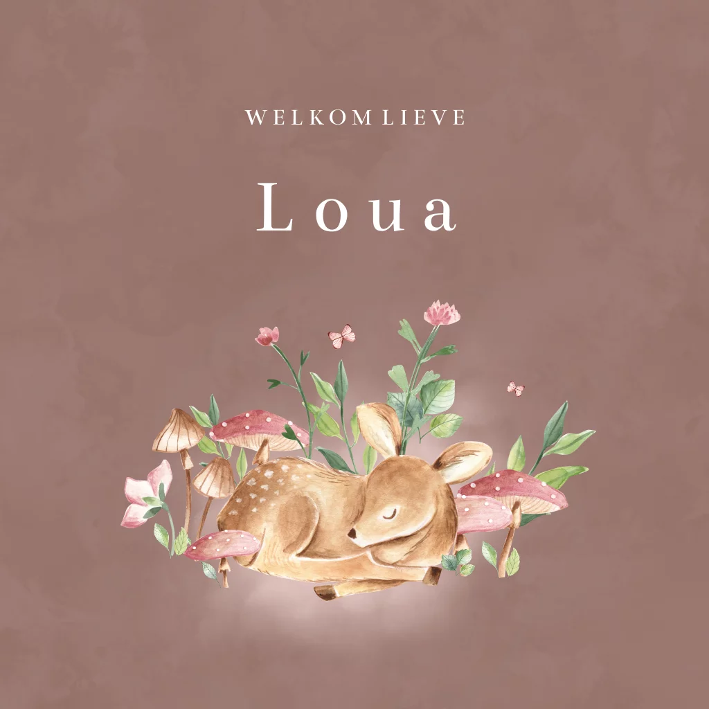 Geboortekaartje voor een meisje met slapend hertje, bloemetjes en warme kleur. (4261)