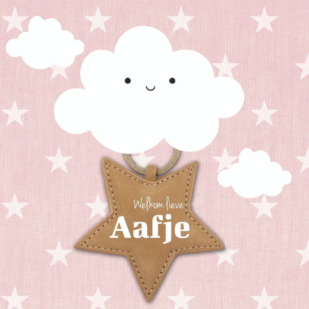 Mooi geboortekaartje met sterrenlabel en lief wolkje. (157)