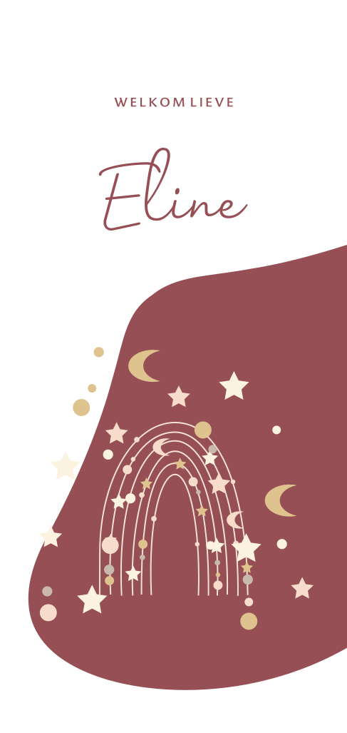 Hip geboortekaartje meisje met sterren en regenboog