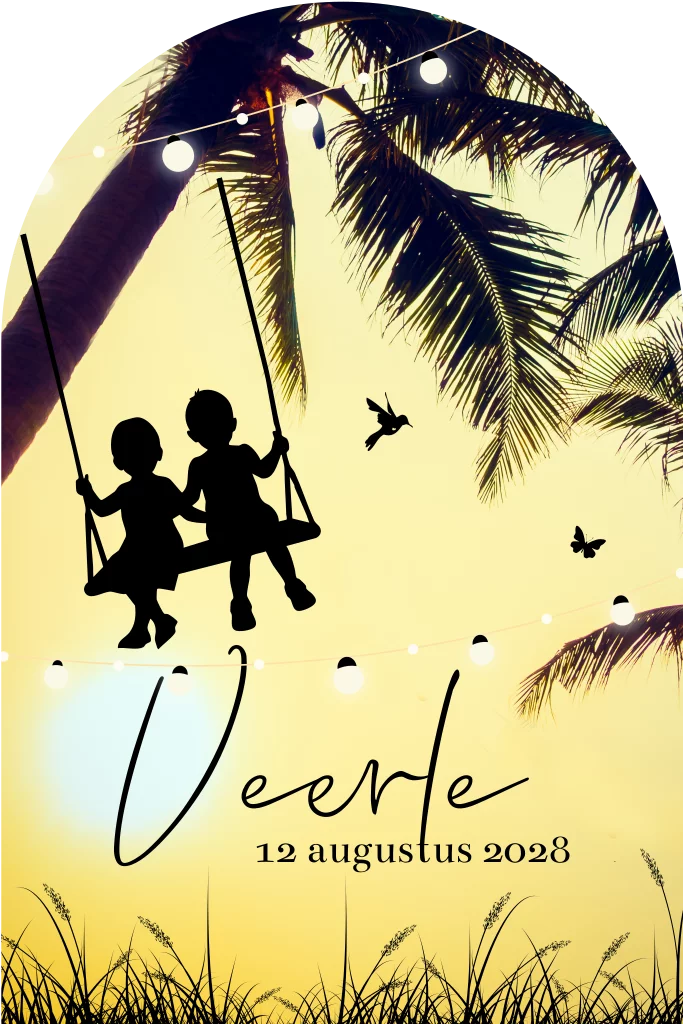 Geboortekaartje meisje 2de kindje schommel kleur palm