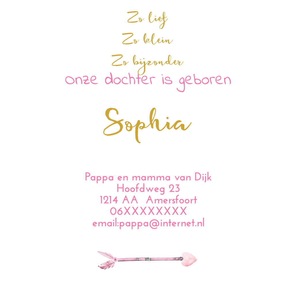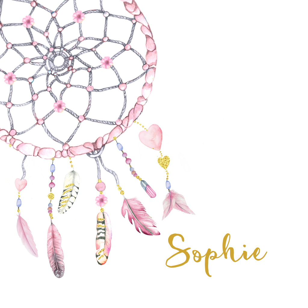Geboortekaartje meisje veertjes hartjes en dromenvanger