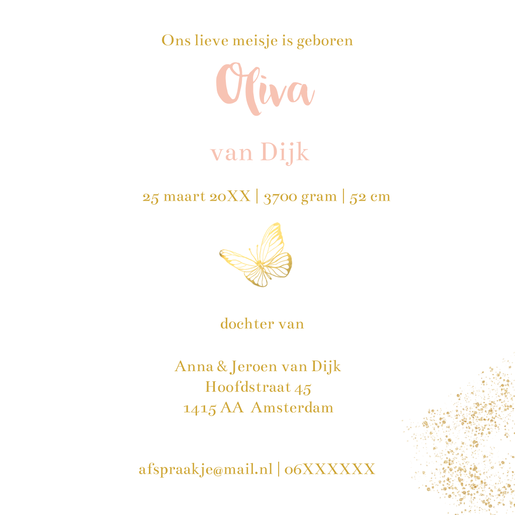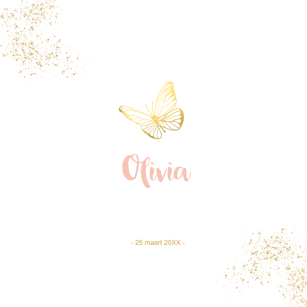 Geboortekaartje voor een meisje met een vlindertje in het goudlook. (3423)