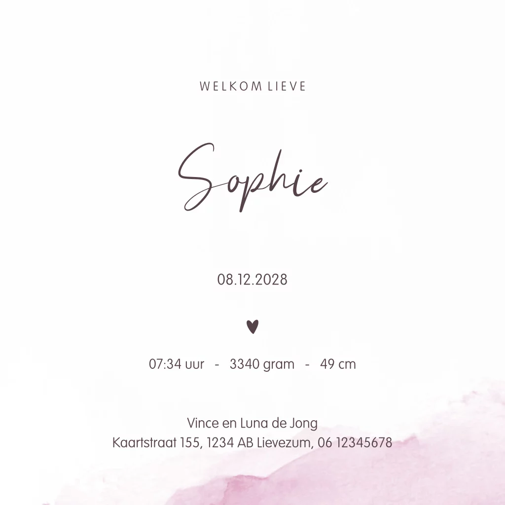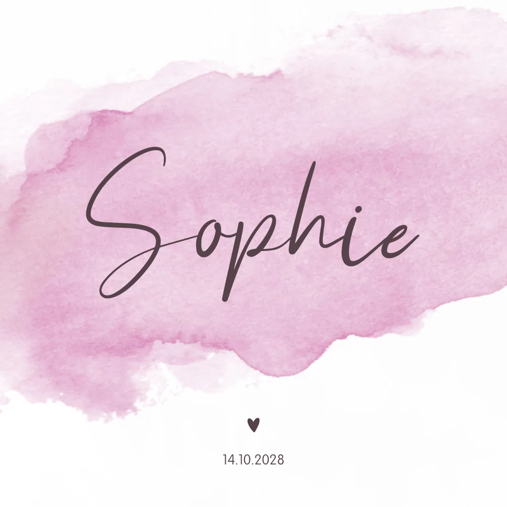 Geboortekaartje met watercolor streep in paars tint. Voor een meisje. (4332)
