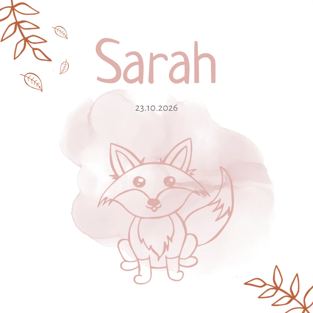Geboortekaartje meisje waterverf en vos