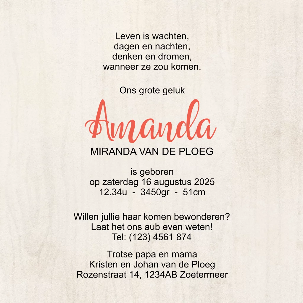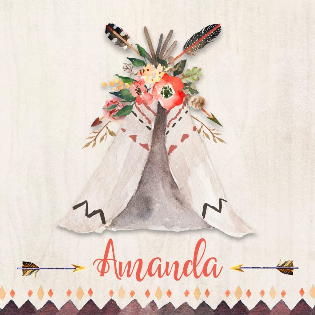 Geboortekaartje meisje wigwam bohemian met veren en bloemen
