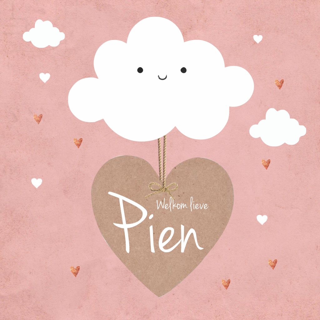 Maak deze schattige geboortekaart voor jullie kleine wondertje. Met lieve hartjes en schattige wolkjes. (162)