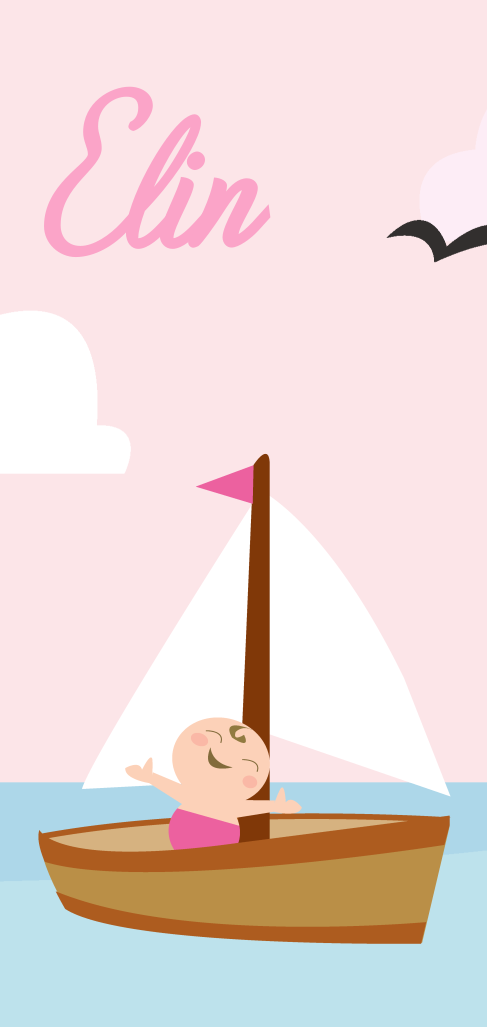Vrolijk geboortekaartje met een zeilboot voor een meisje. Leuk voor ouders die van zeilen houden. (3192)