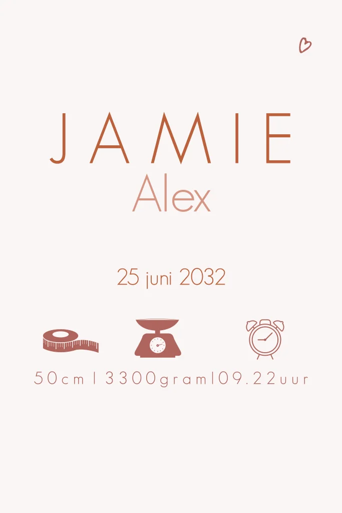 Een warm en teder geboortekaartje voor een meisje, met een lijnillustratie van haar grote zus die haar omhelst. Het minimalistische design straalt verbondenheid uit en kan eenvoudig naar eigen wens aangepast worden in onze online editor.