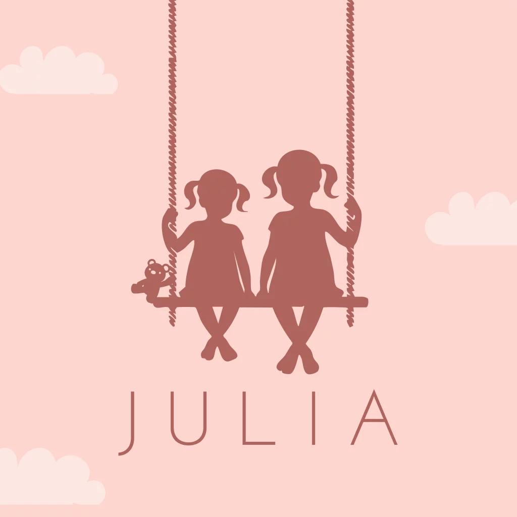 lief geboortekaartje van 2 zussen die samen op een schommel zitten