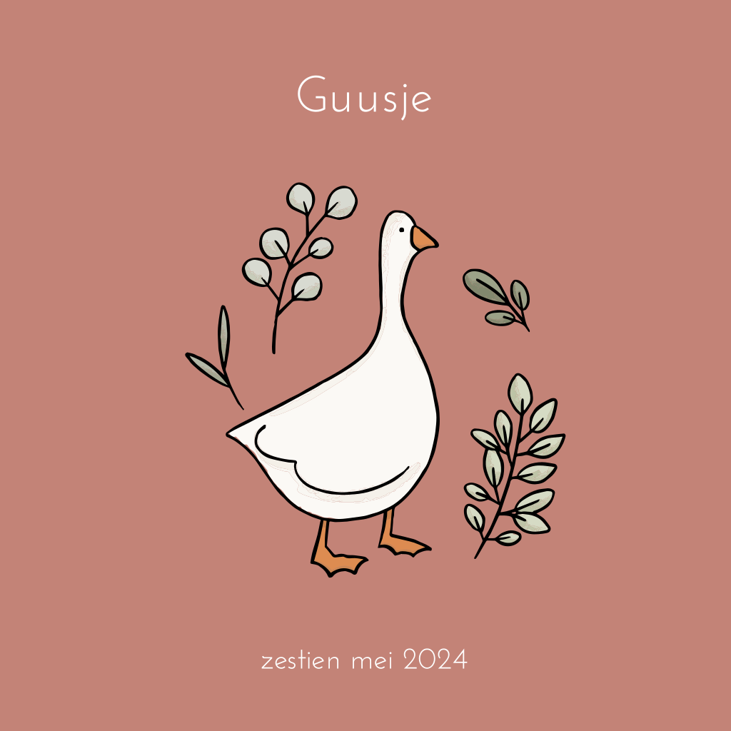 Terra achtergrond geboortekaartje meisje met gansje en takjes. (4039)