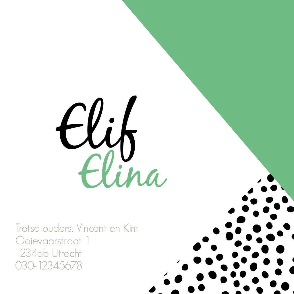 Geboortekaartje meisje met geometrische vlakken cheetah mint