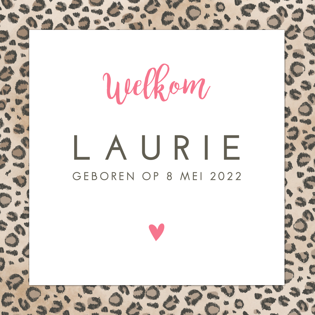 Geboortekaartje met panterprint kader
