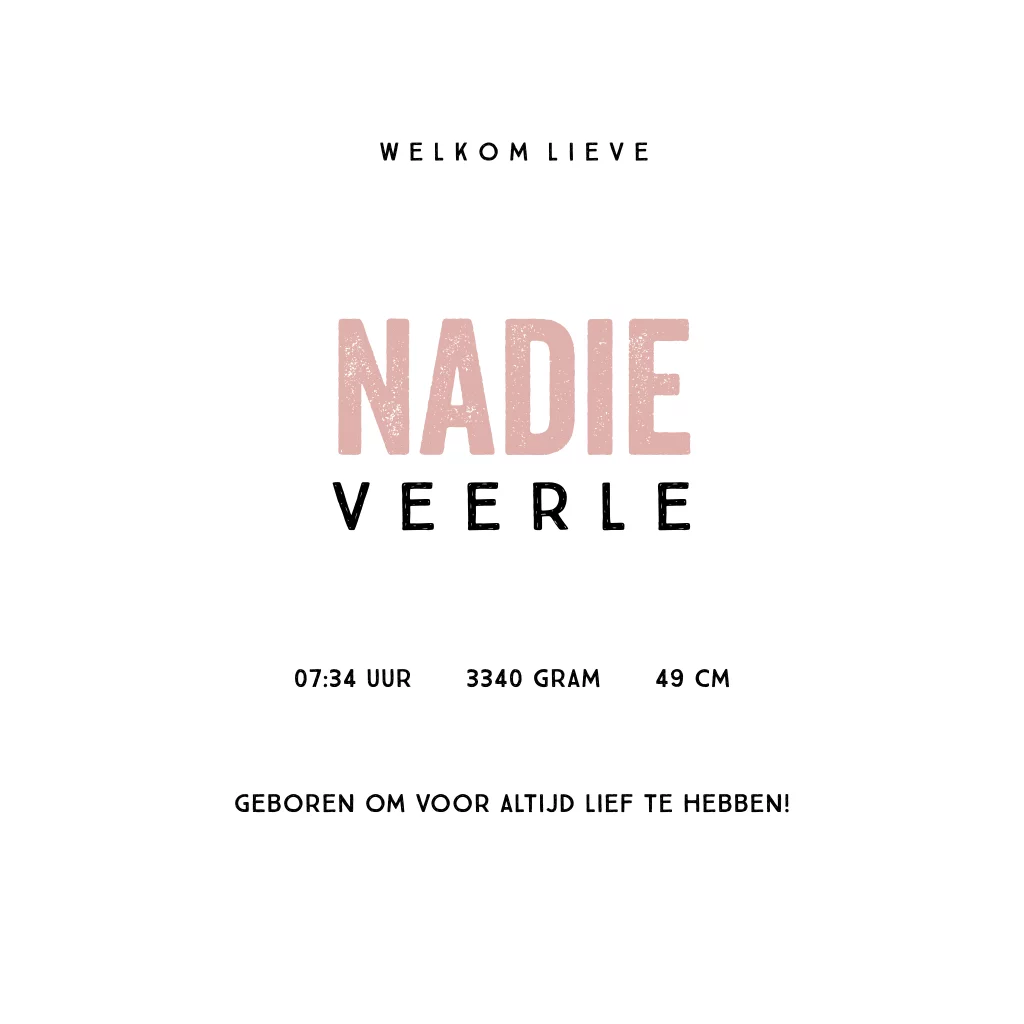 Minimalistisch en stoer geboortekaartje voor een meisje.