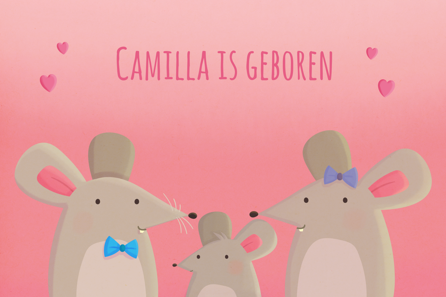 Geboortekaartje muis familie meisje blauw dieren. (3340)