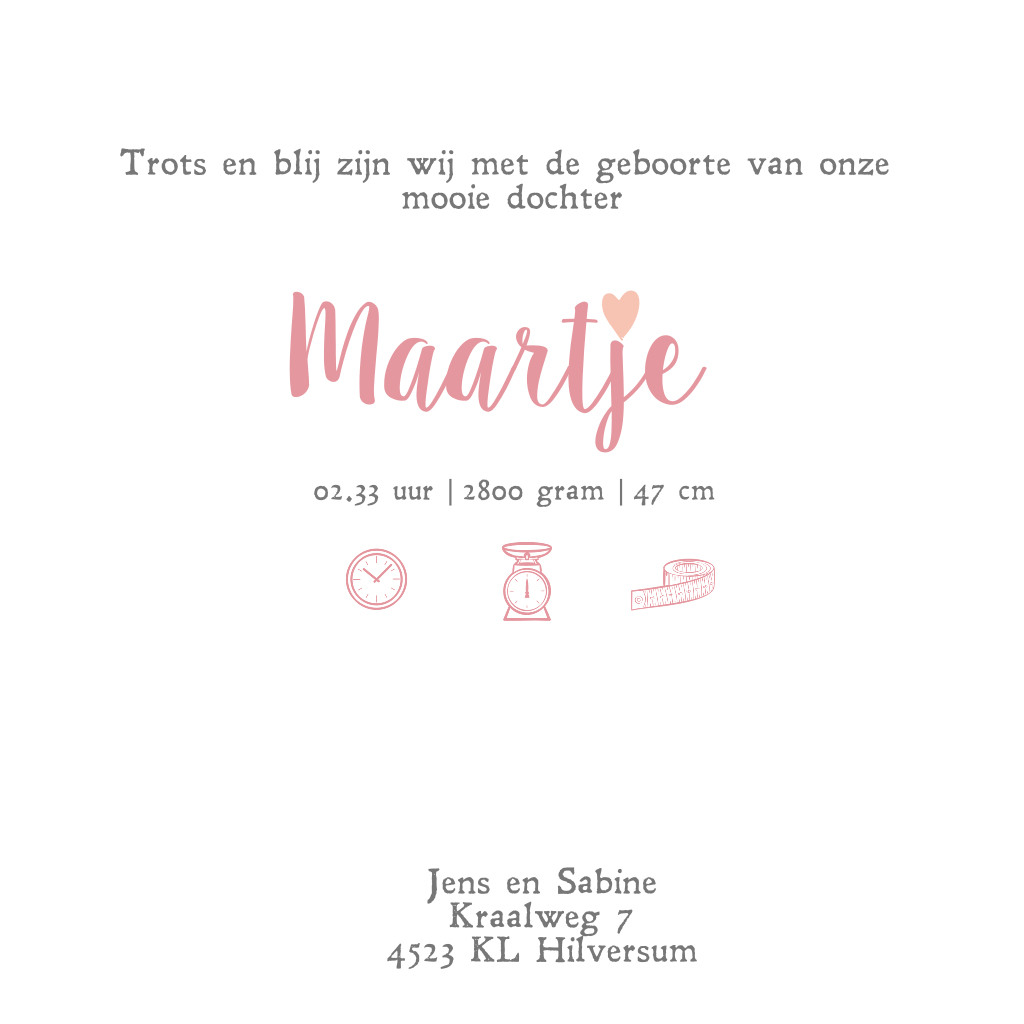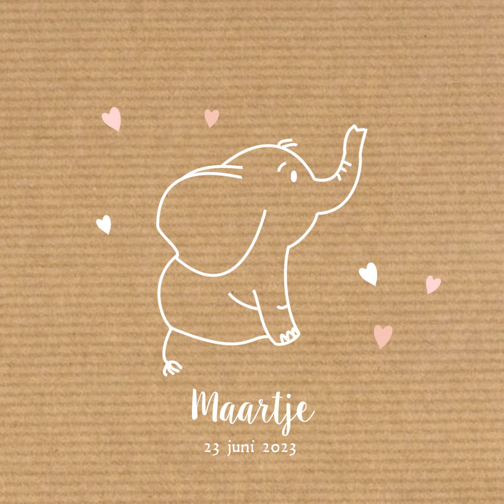 Hip en lief geboortekaartje voor een meisje met een olifant en hartjes
