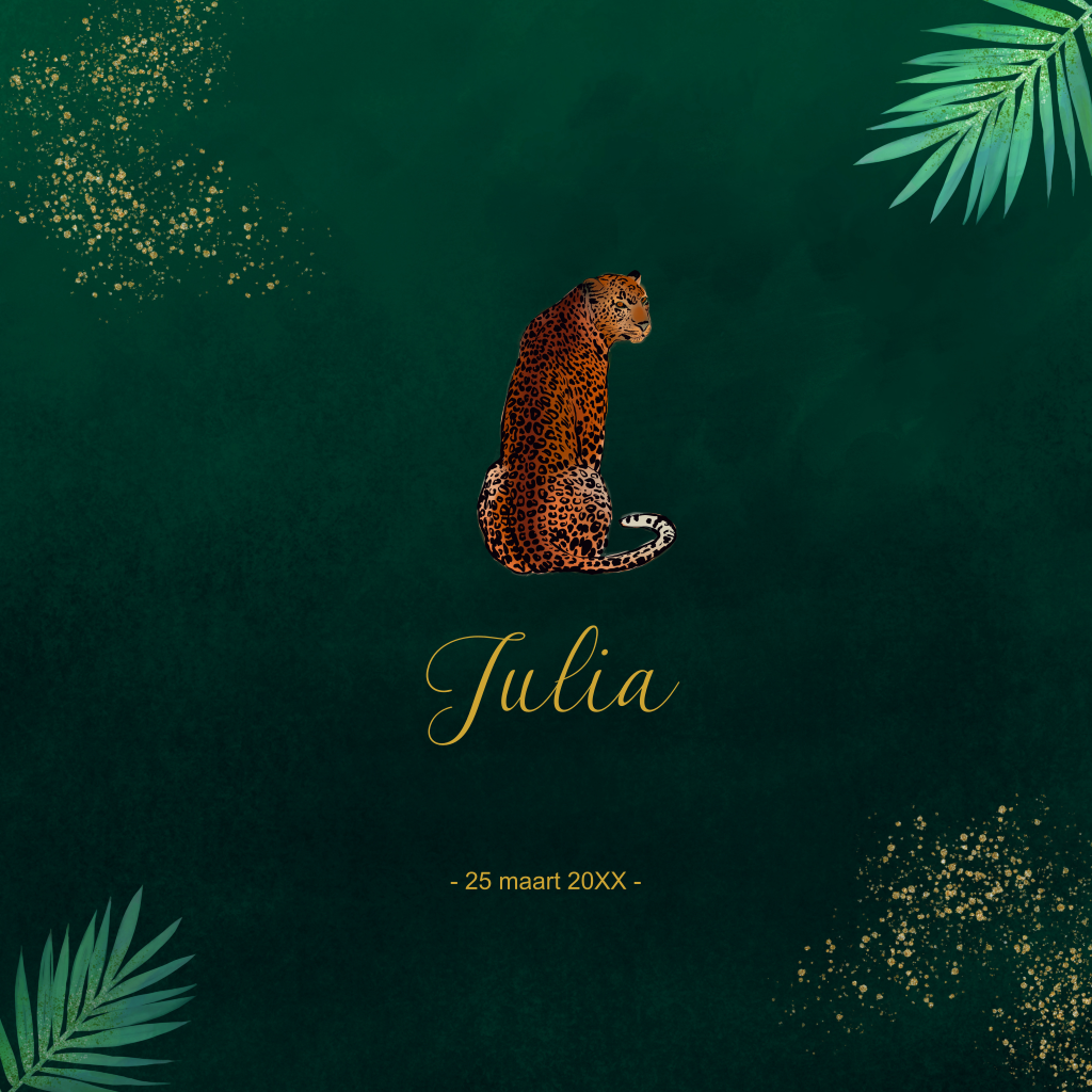 Geboortekaartje meisje met mooie panter en tropische achtergrond. (3416)