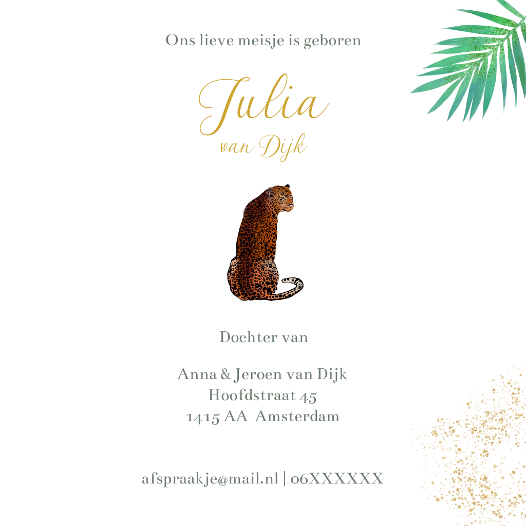 Geboortekaartje panter meisje