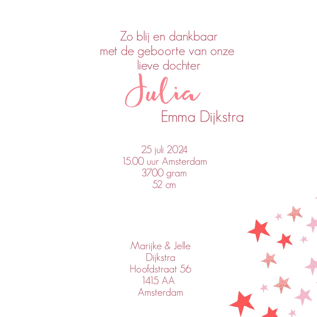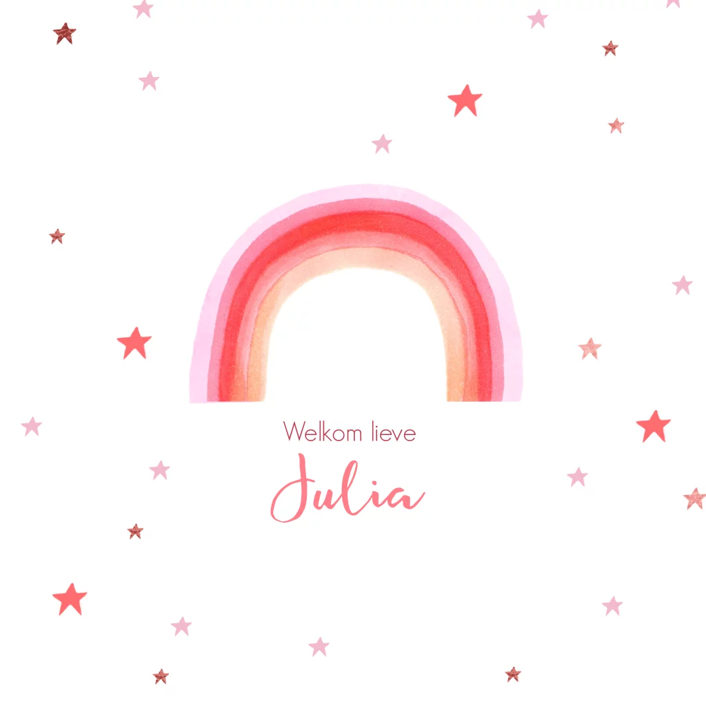 Geboorte met een regenboogje in het flamingo roze voor een meisje met veel sterretjes. (3038)