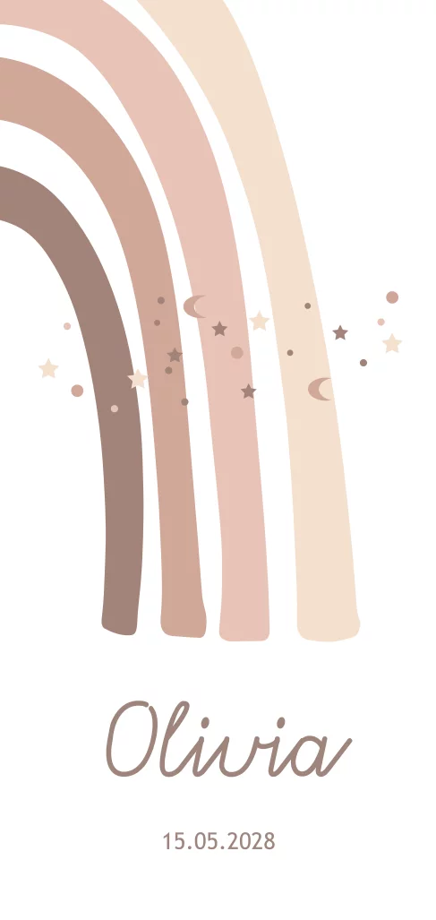 Geboortekaartje Olivia regenboog meisje aardetinten
