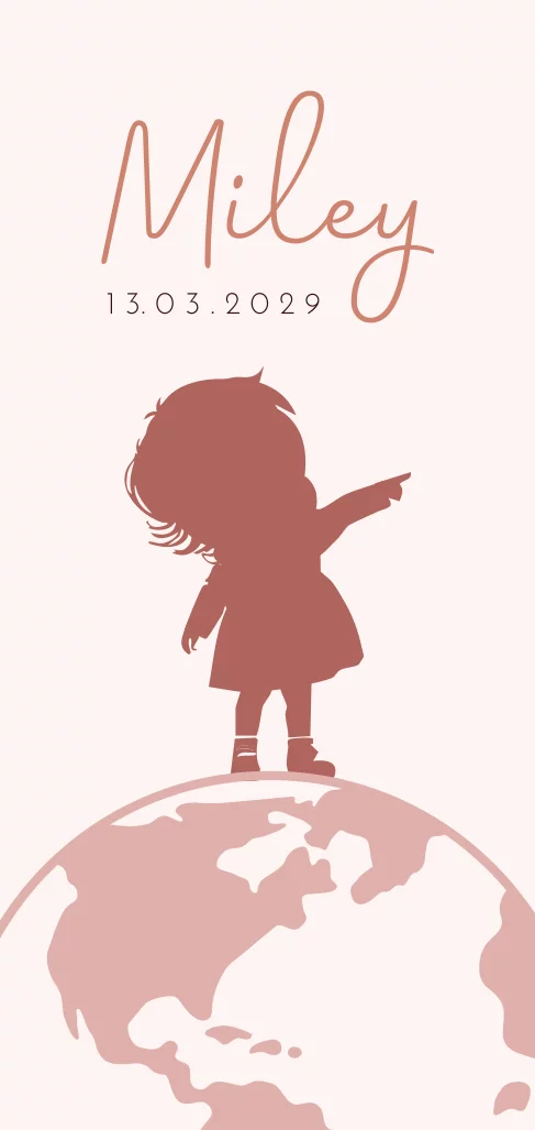 Een prachtig geboortekaartje met silhouet en roze aarde, pas het ontwerp aan in onze online editor. Het leven is een avontuur.