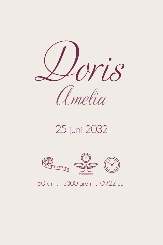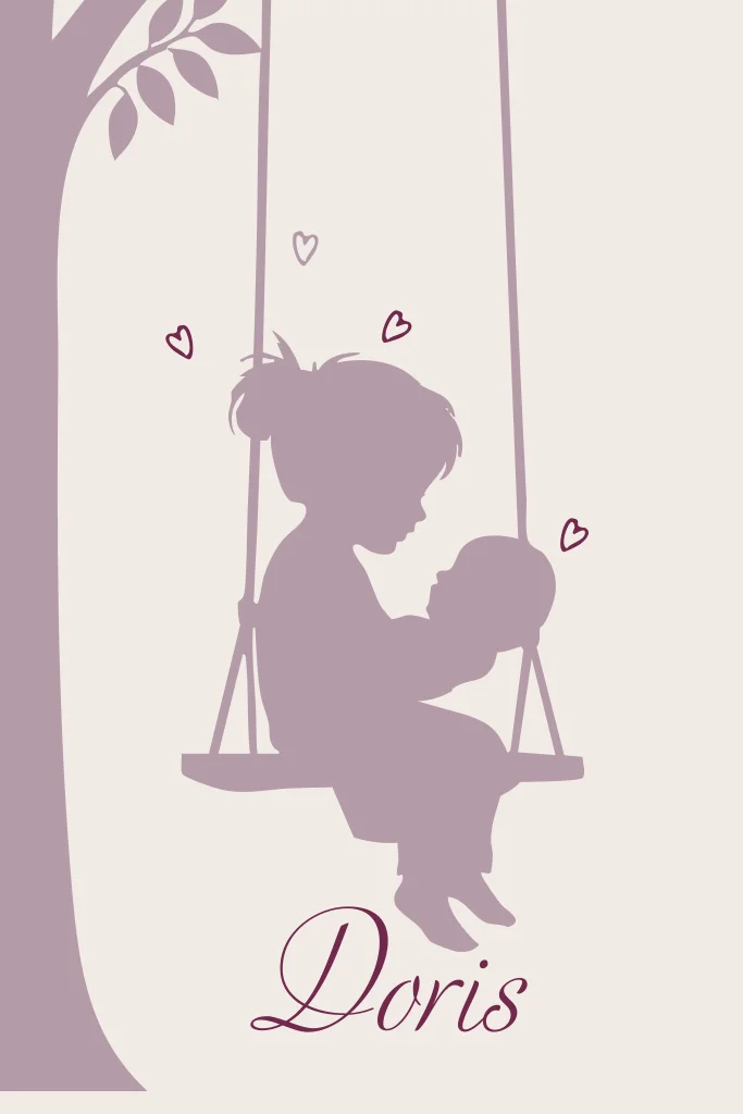 Een lief geboortekaartje met silhouet en wieg in lila. Pas het ontwerp zelf aan in onze online editor.