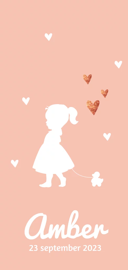 Geboortekaartje silhouet meisje koper kleurig hartjes
